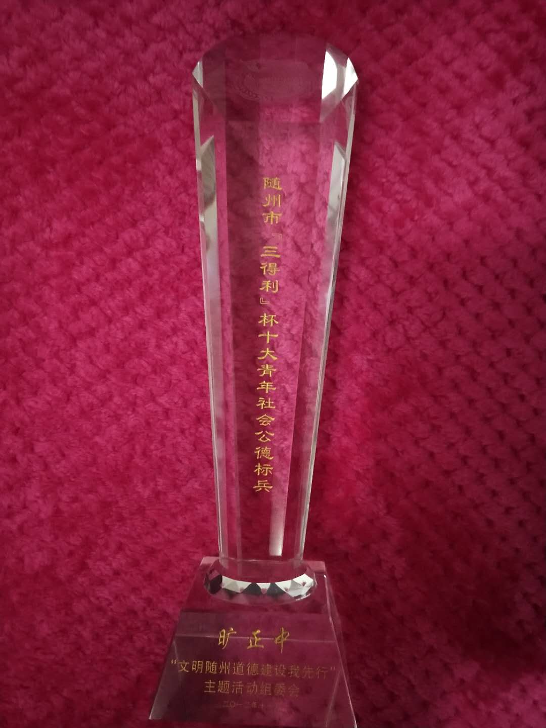 到武漢建材院工作以前曠正中是解放軍某部一名干部。96年剛入伍時,他是一名通信兵,在幫老百姓修理電話時,發現一老人生病臥床無人照料,他就背起老人送醫院治療。在照料中,得知鄒珍阿姨已經75歲了,老伴已經過逝,沒有兒女,身體狀況也不好,生活孤獨無依靠,他就像對待自己的母親一樣開始照顧鄒媽媽,2016年9月3日老人以95歲高齡含笑離開了這個世界。他一直把這件事埋藏在心里,默默地做奉獻,2012年被朋友向隨州日報尋找好人欄目爆料,大眾才知道他十幾年無私照顧老人的事跡,當年他被隨州市評為“十大青年社會公德標兵”。